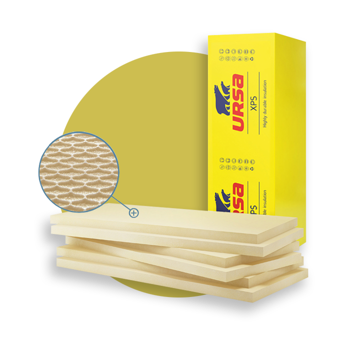 Tepelná izolace URSA XPS má kompaktní uzavřenou strukturu. 100% uzavřená buněčná struktura milionů buněk, které zadržují vzduch uvnitř, brání prostupu tepla a vnikání vody. Díky tomu se URSA XPS hodí i do extrémních podmínek, jako jsou izolace podlah, izolace obrácených plochých střech, izolace perimetru, izolace soklů, izolace tepelných mostů, izolace suterénních stěn.