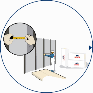 Po 5 minutách minerální izolaci URSA natřeseme. Tak izolace dosáhne své nominální tloušťky a je tím připravena k aplikaci do konstrukce. Pro standardizované osové rozteče 625 mm je minerální izolace URSA PUREONE TWP 37 rozměrově připravena k přímé aplikaci do konstrukce. Při nestandardním rozměru si změříme šířku rozteče svislých profilů. Pro zajištění lepší fi xace a vypnutí minerální izolace v roštu přidáme k naměřenému rozměru 2 cm.